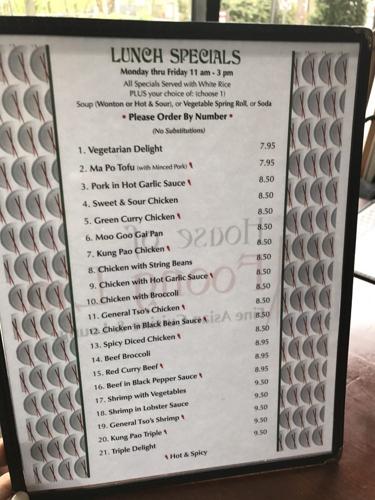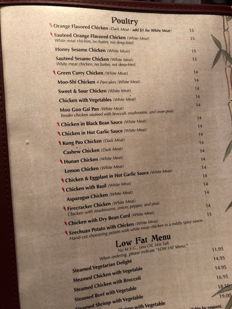 House Of Foong Lin in Bethesda, MD offers a wide range of Chinese dishes with a special focus on soups, appetizers, and Chef's recommendations. Some popular items include the creamy Chicken Corn Soup, Barbecued Pork, and the Fresh Mango Shrimp. Customers praise the great food quality, tiki drinks, and lively ambiance. The restaurant also offers catering, a full bar, and outdoor seating. Vegetarian options are plentiful, making it a great choice for all diners. The menu showcases a variety of flavors and textures, from spicy broths to crispy wings. With positive reviews highlighting attentive service and fair prices, House Of Foong Lin is a top choice for Chinese cuisine in South Bethesda.